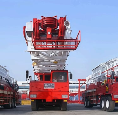 The XJ150–SXJ1200 series self-propelled workover rigs offer a complete range of specifications with a maximum hook load of 600 kN–2250 kN. We have developed a variety of new **fast-moving, high-efficiency and energy-saving models tailored to diverse environmental and operational requirements, including double-fast-line workover rigs, guy line-free workover rigs, wheeled workover rigs, diesel-electric dual-drive workover rigs, grid-connected energy storage workover rigs, LNG-powered workover rigs, desert workover rigs, low-temperature workover rigs and mountain workover rigs. Complementary mechanized and automated tools for workover operations are also available, such as power cats, hydraulic pipe racks, hydraulic lifting driller’s cabins and iron roughnecks for workover applications